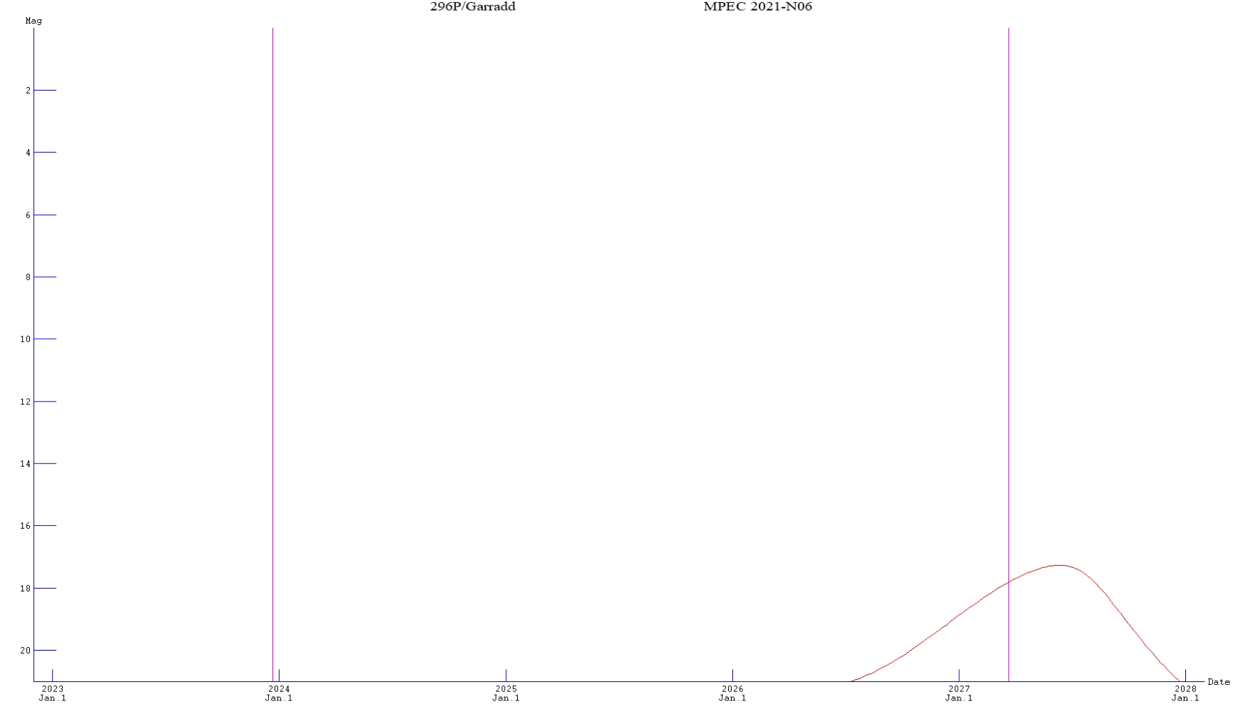 Perihelion date: 23 March 2027
